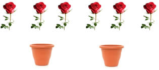 Isadora distribuiu 6 flores em 2 vasos, colocou a mesma quantidade qm cada caso. Selecione a alternativa que mostra quantas flores Isadora colocou em cada vaso: