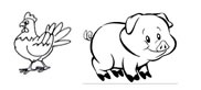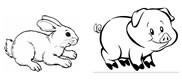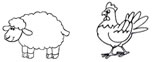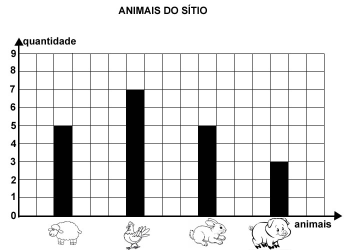 Veja os animais do sítio e a quantidade de cada um. Click na alternativa que mostra os doi animais do sítio que possuem a mesma quantidade.