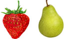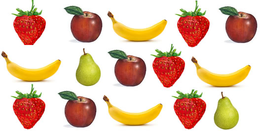 Veja as frutas de Dona Ana. Click na alternativa que mostra Dona Ana tem a mesma quantidade.