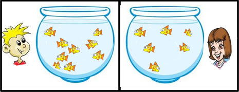 João tem mais peixes que Vânia. Veja. Click na alternativa que mostra quantos peixes João tem a mais.