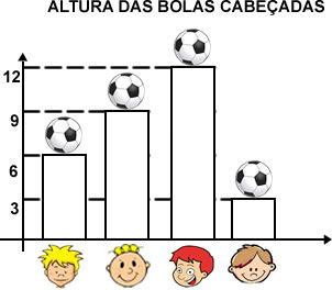 O gráfico mostra a altura que a bola alcançou ao ser cabeceada por cada jogador. Click na alternativa que apresenta o jogodaro que conseguiu cabecear a bola mais alto.