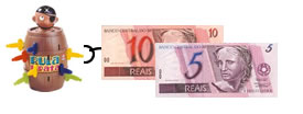 Veja o preço de cada brinquedo. Clique na opção em que o brinquedo custa 3 reais.