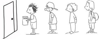 Veja uma fila de crianças para entrar na sala de aula, clique na opção que mostra o número de crianças que está na fila.