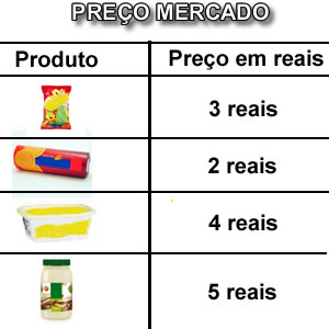 Veja o preço dos produtos que mamãe comprou no supermercado.