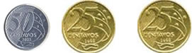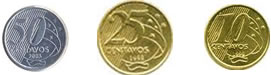 Clique na opção que representa o conjunto de moedas que tem o mesmo valor de um real.