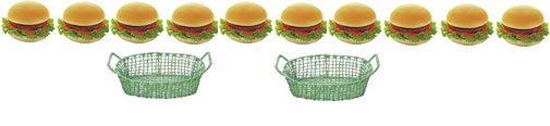Renata tem 10 sanduíches para ser divididos igualmente em 2 cestas.