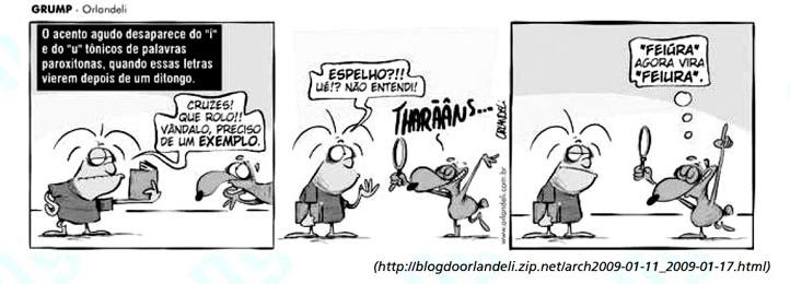 Levando em conta as informações do primeiro quadrinho, identifique a alternativa que apresenta a palavra que também sofreu alterações na acentuação gráfica devido à regra mencionada.
